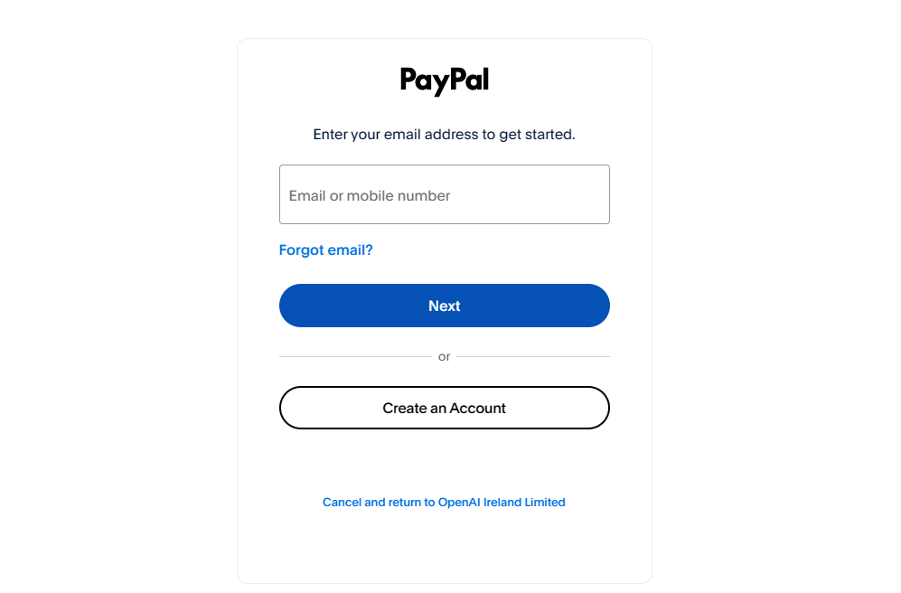 5、然后就会跳转到PayPal登录页面,这里就不展示了,同样的就是绑定chatgpt账号的流程。