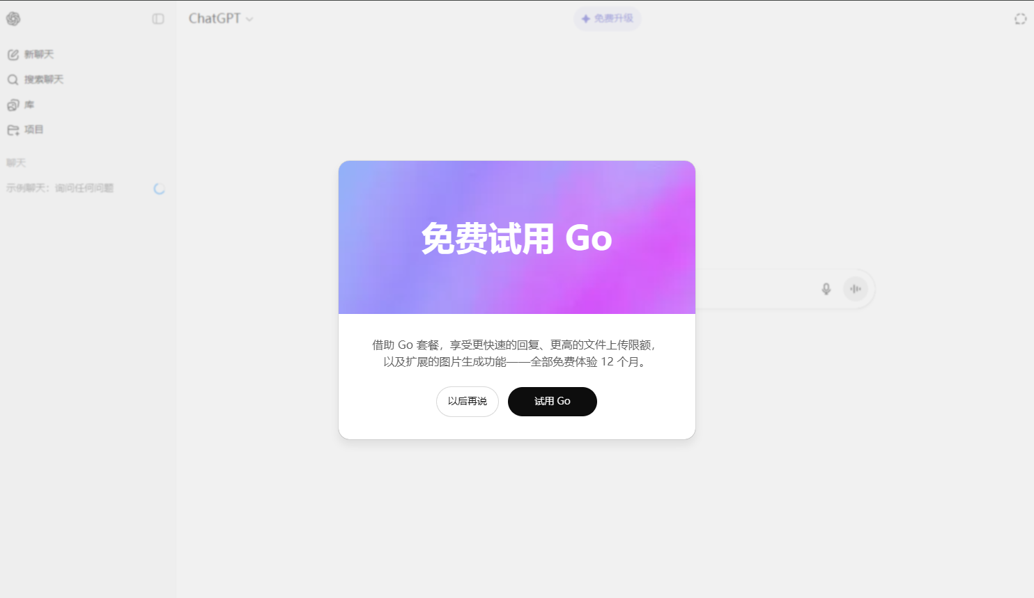 这是OpenAl在印度推出的限时“ChatGPT Go 一年免费”优惠套餐,