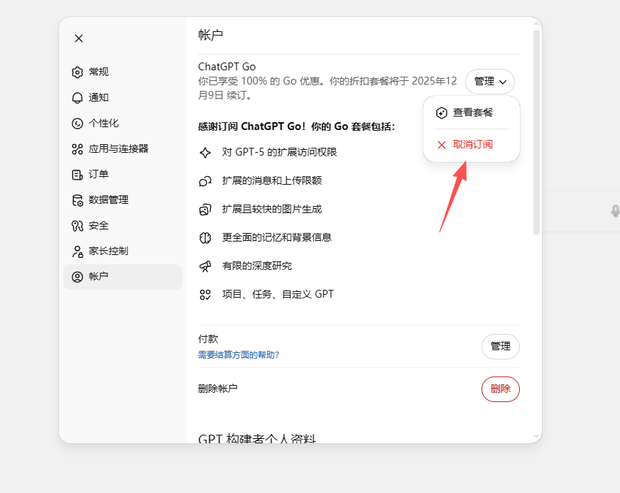 这里需要注意的是,chatgpt是每个月续费的,所以你不需要理会,因为它会自动续费到明年注册的那个日期为止。